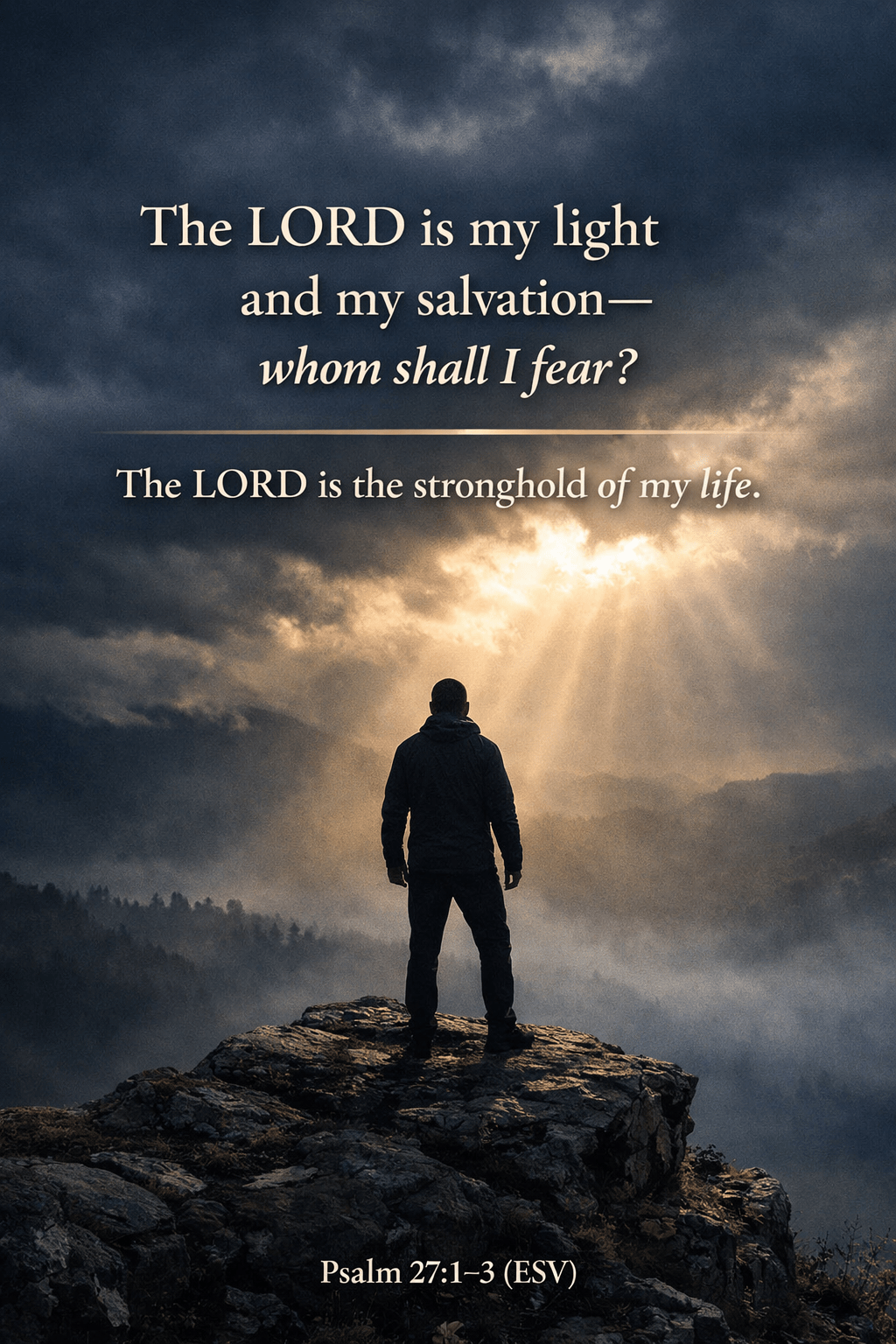 Closing Prayer Lord, You are my light when darkness surrounds me, my salvation when danger threatens, and the stronghold of my life when fear presses in. Teach me to trust You fully—not only after You deliver me, but while I wait for You to act. Hide me in Your presence, steady my heart with Your grace, and lift my eyes above my enemies. I choose confidence, not because of my strength, but because You are with me. Amen.