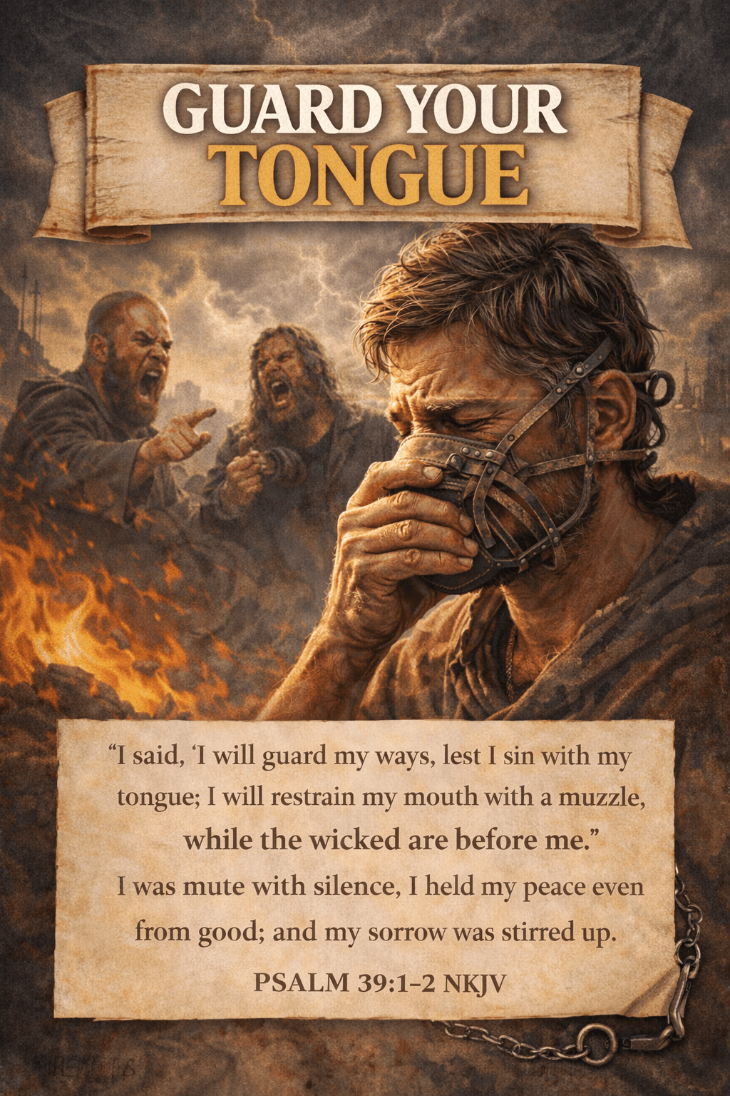 David describes a situation where he was surrounded by the wicked—people who did not know or honor God. In that setting, he made a conscious decision: he would guard his words so that he would not sin with his tongue. He even uses strong imagery, saying he would keep a “muzzle” on his mouth.