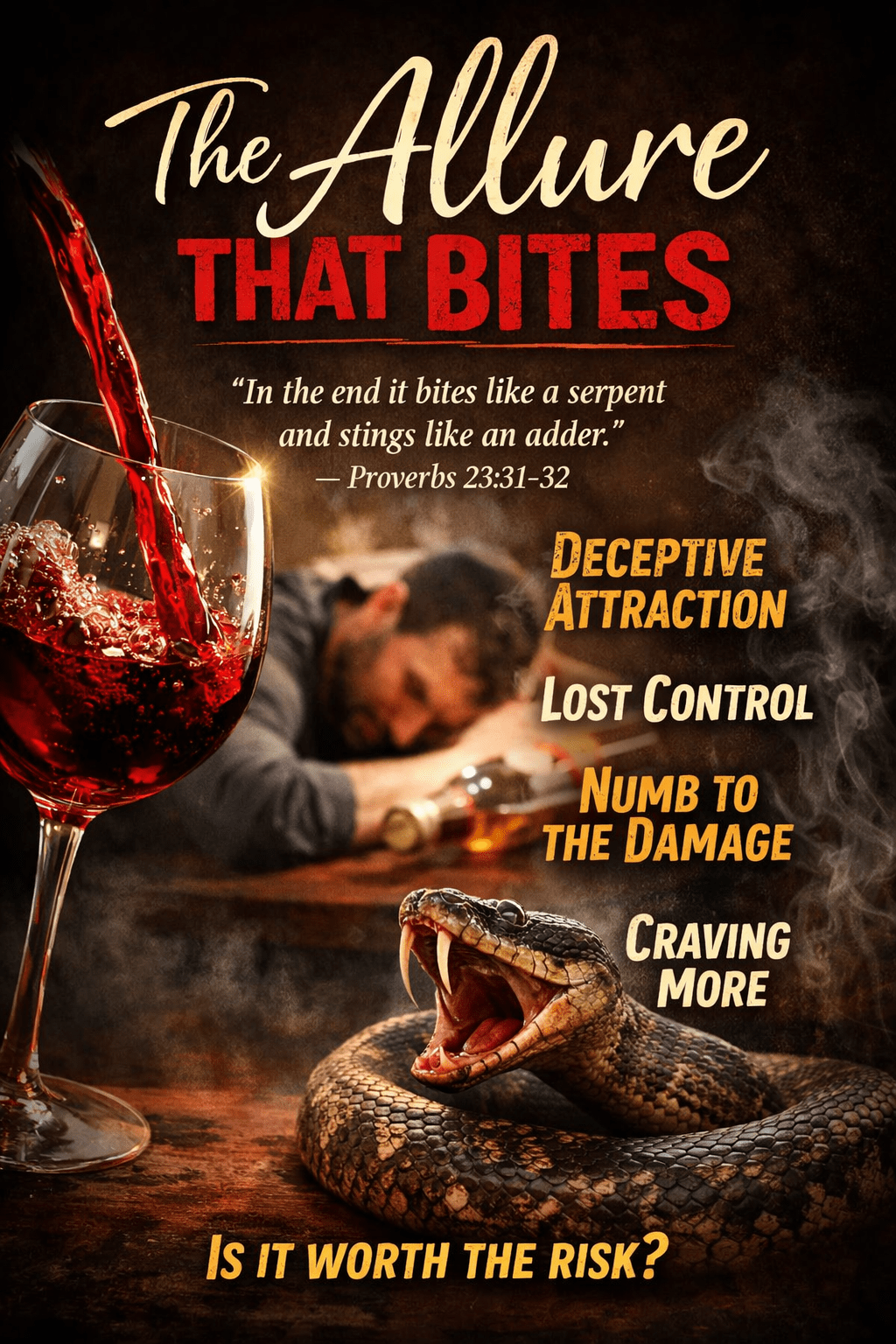 Proverbs 23:29–35 gives one of the clearest and most sobering pictures in all of Scripture of what alcohol can do. It doesn’t begin with warning—it begins with attraction. The wine is red, sparkling, smooth. It looks harmless. Appealing. Even enjoyable. But Scripture pulls back the curtain and shows the end result: “it bites like a serpent.”