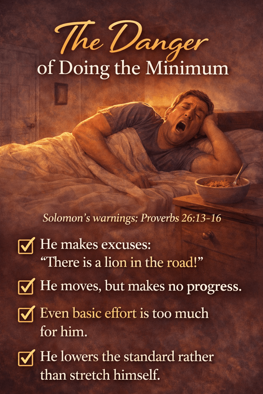 Heavenly Father, forgive me for the times I’ve aimed at the minimum instead of seeking to honor You fully. Help me to recognize laziness in my own heart and to resist it. Give me a desire to work diligently, to serve faithfully, and to grow spiritually. Let my life reflect Your worth in the effort I give each day. In Jesus’ name, Amen.