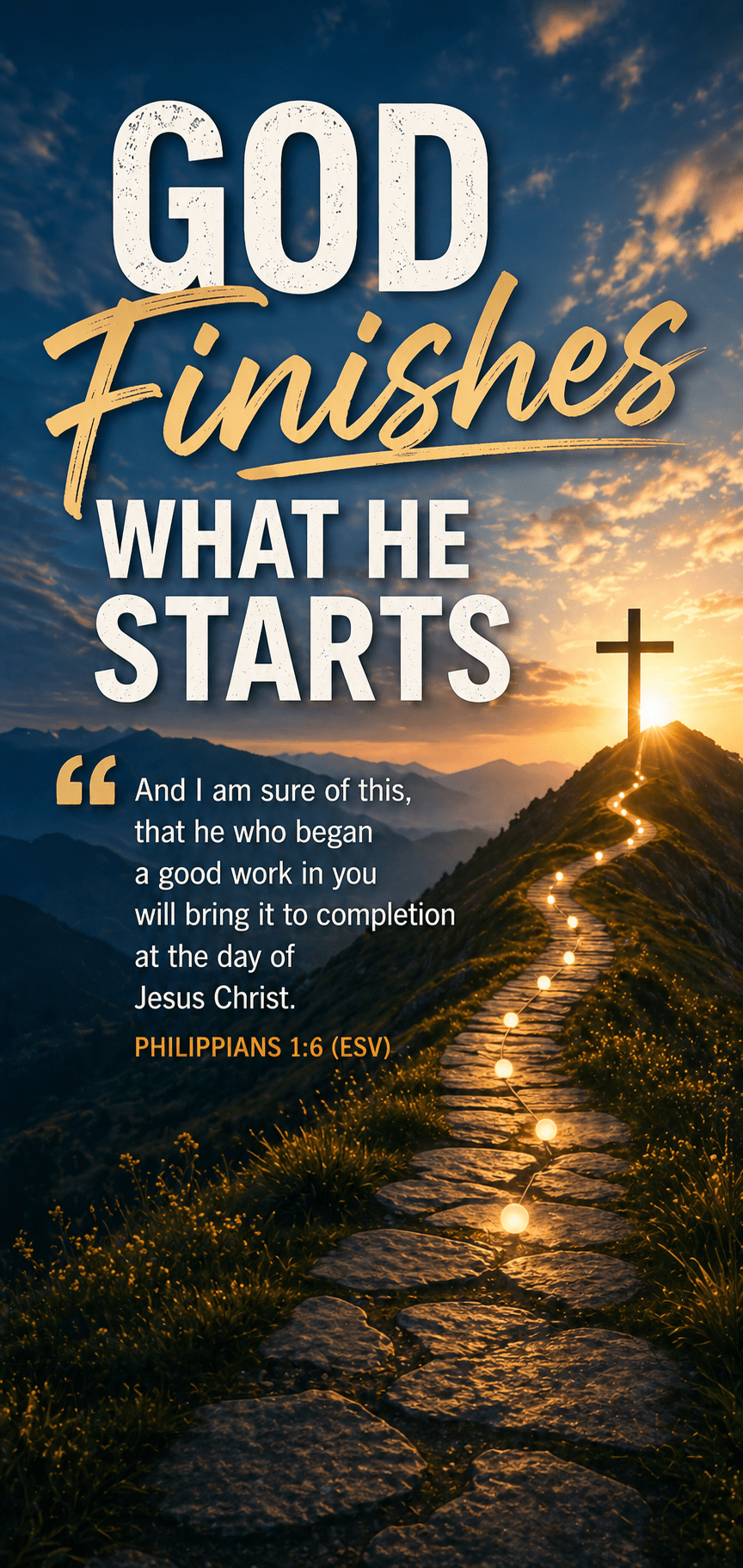 Father, I thank You that my salvation is Your work from beginning to end. Forgive me when I place my confidence in myself instead of in You. Teach me to rest in the assurance that You will complete what You have started. Continue shaping me into the image of Christ day by day, and help me live with hope and perseverance as I wait for the day when Your work is perfected in me. Keep my heart fixed on Jesus, and let my life bring glory to You until the day I see You face to face. In Jesus’ name, Amen.